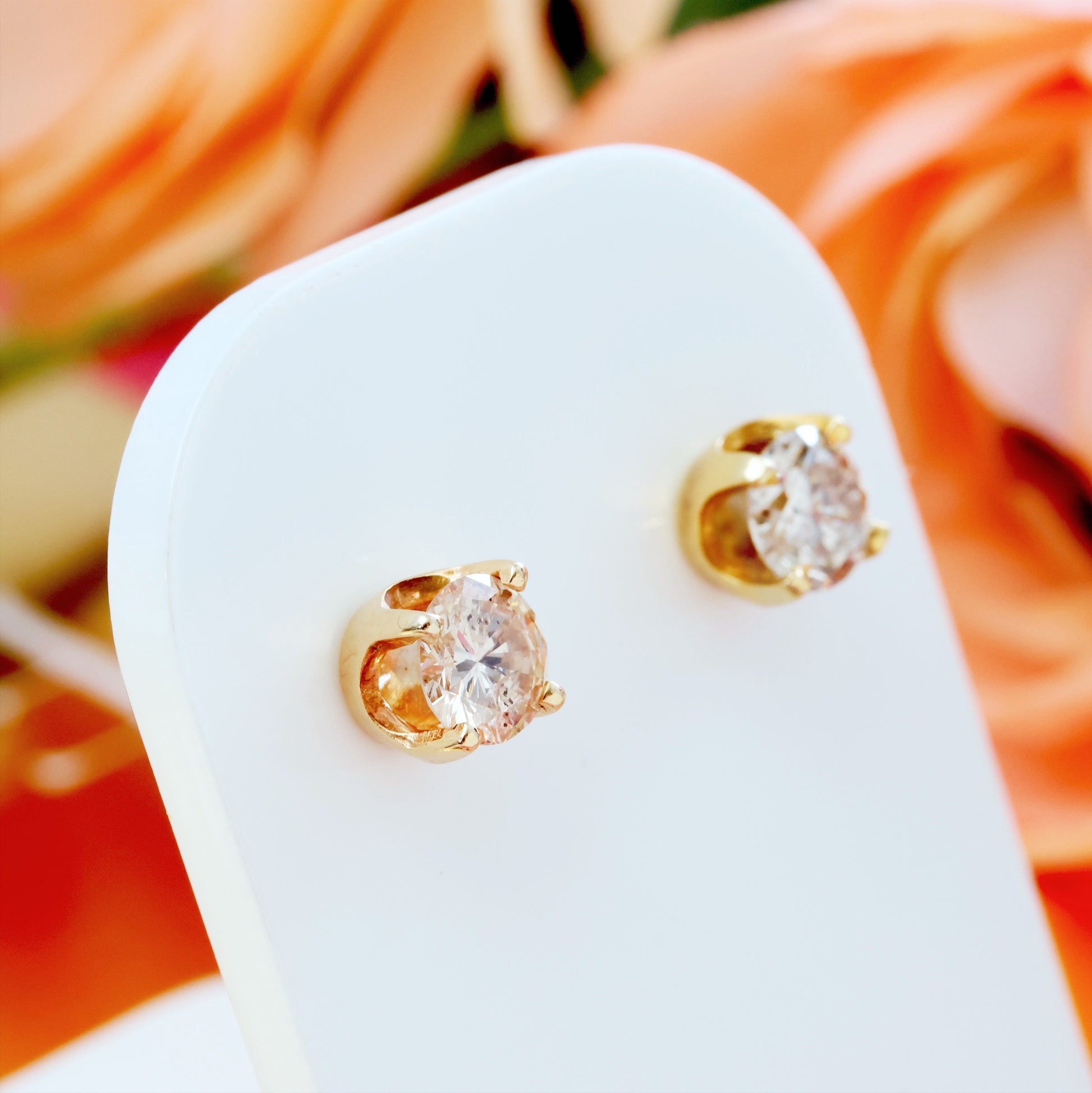 The natural Diamonds are a gentle pale Champagne shade and very fizzy too! Set in hand crafted 18ct yellow Gold on screw back posts for security.