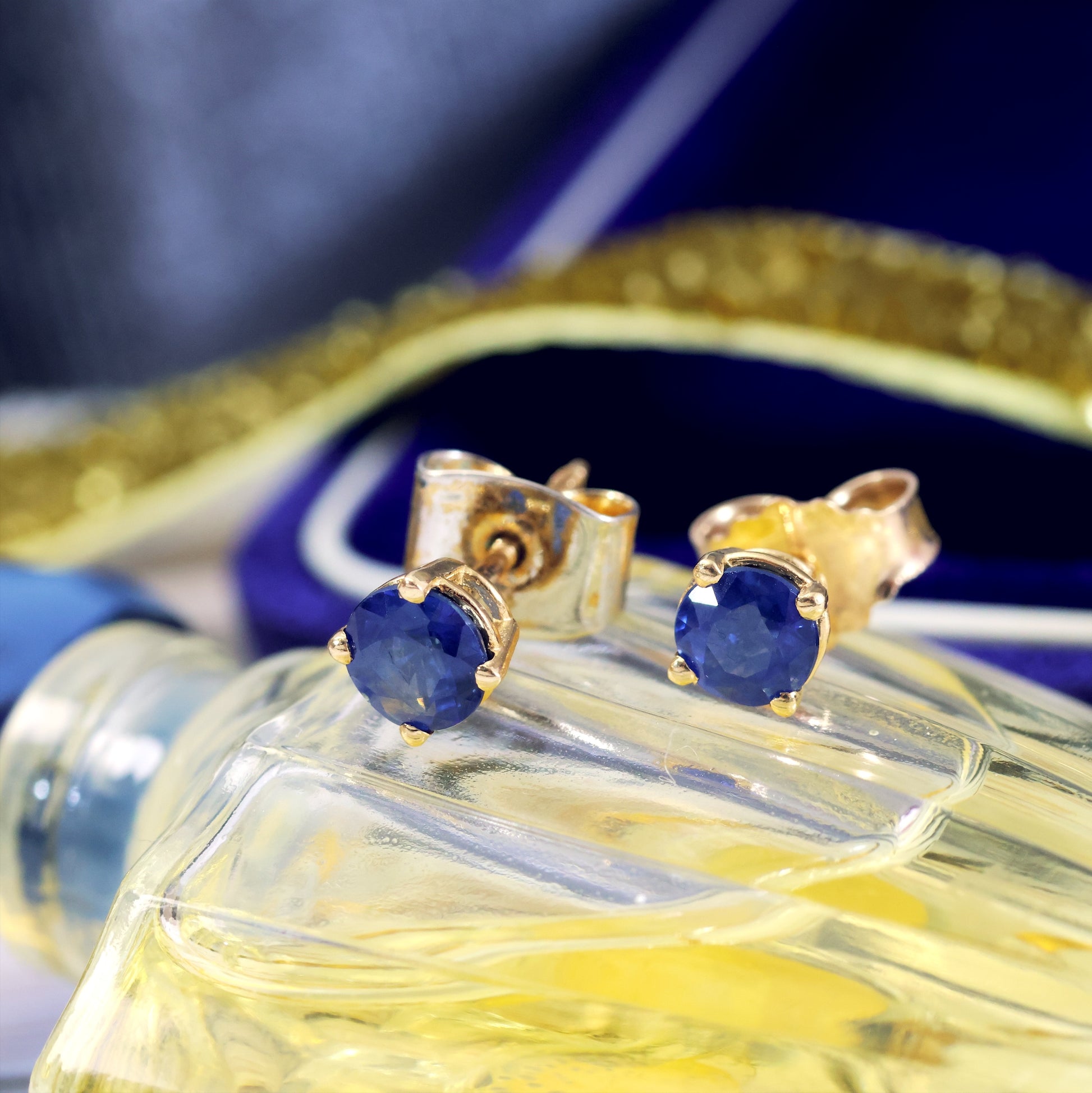 DESCRIPTION: A lovely quality pair of vintage 18ct yellow Gold set Sapphire earring studs. The gems are a wonderful pure blue which just glow!