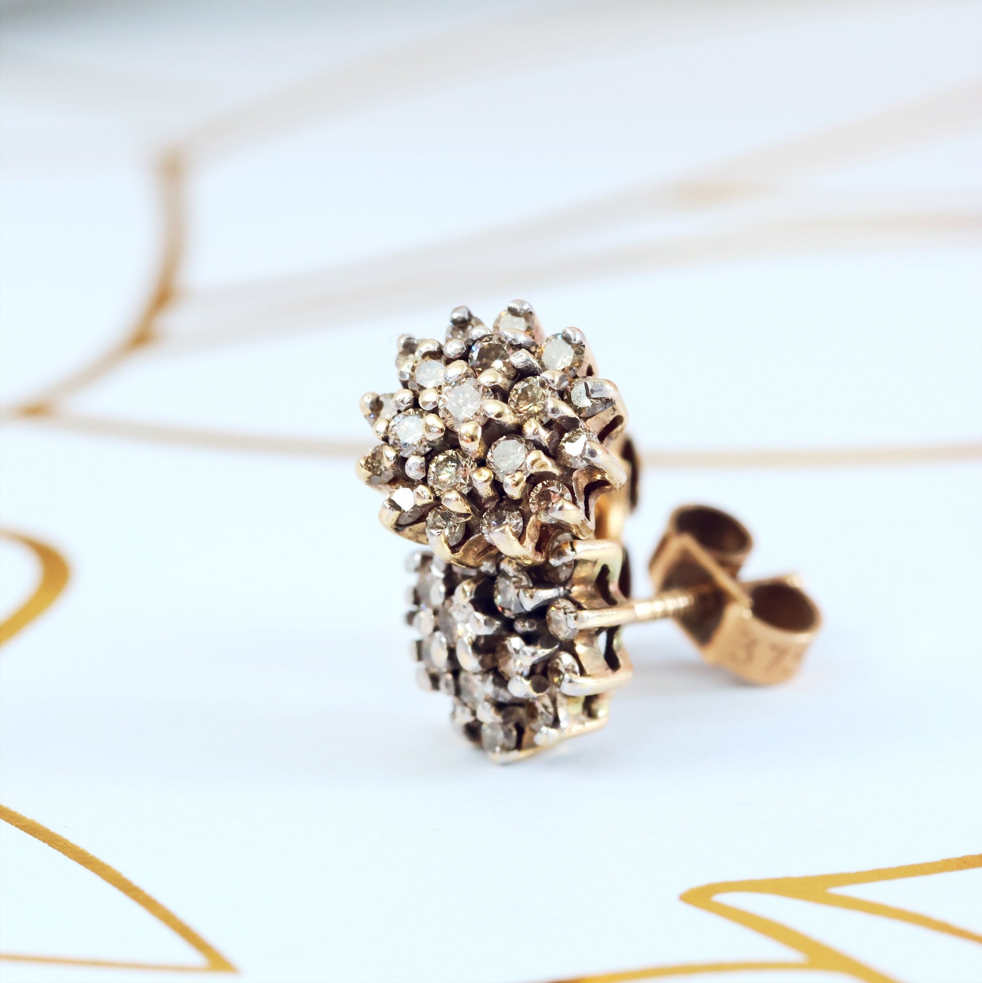 DESCRIPTION: A pair of vintage Diamond cluster earrings dating to the 1990's and really pretty. The stud design sits neatly and the tiny Diamonds catch the light nicely.