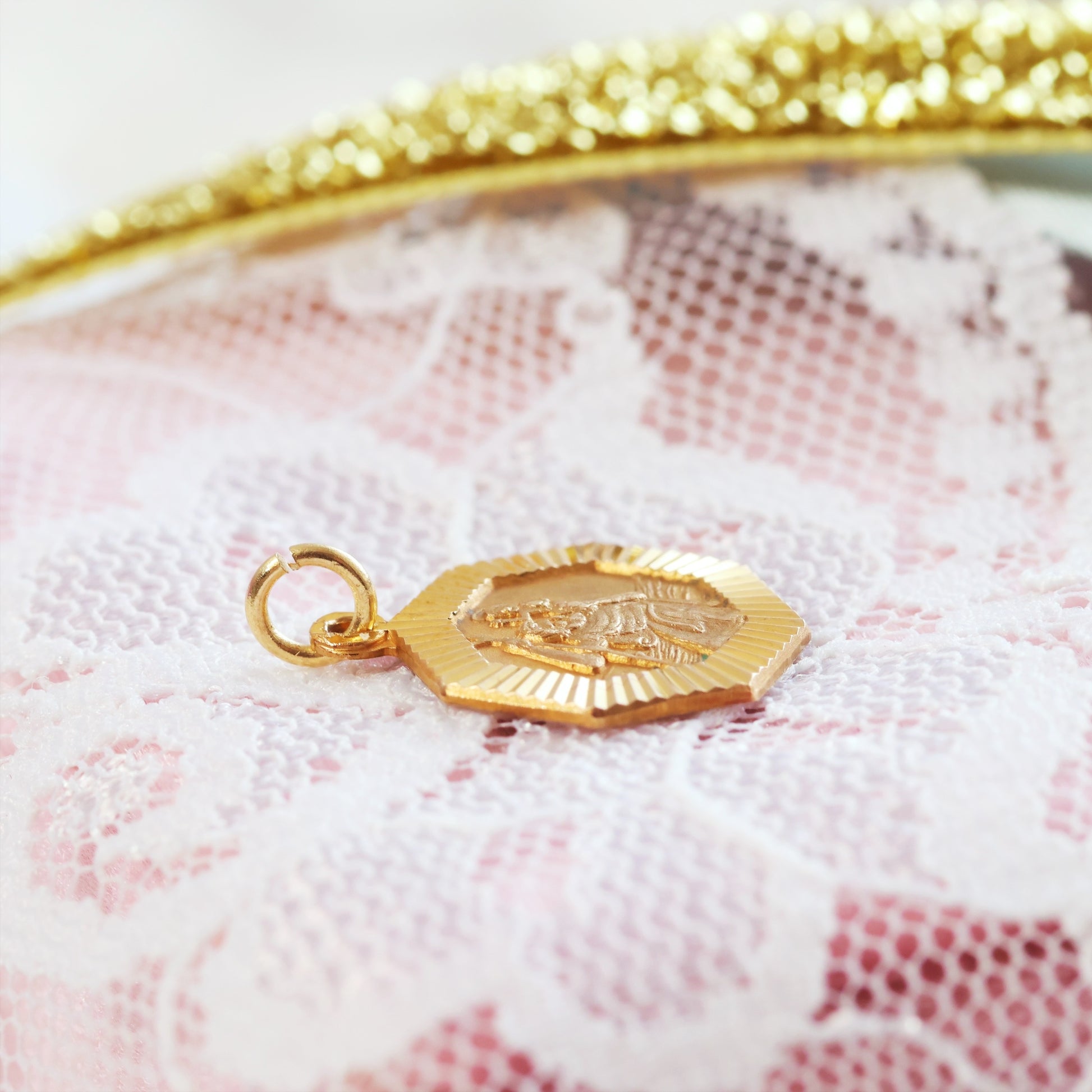 DESCRIPTION: A sweet octagonal shaped 9ct Gold Saint Christopher pendant with a pretty shiny faceted edging and a full hallmark on the reverse for London 1982.